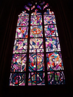 Vidriera cubista de Dürrbach, discípulo de Picasso, en la Basílica.